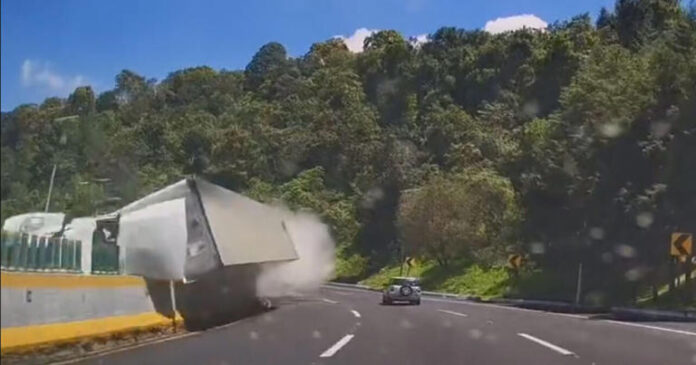 Accidente en la autopista México-Cuernavaca: un tráiler se voltea en La Pera