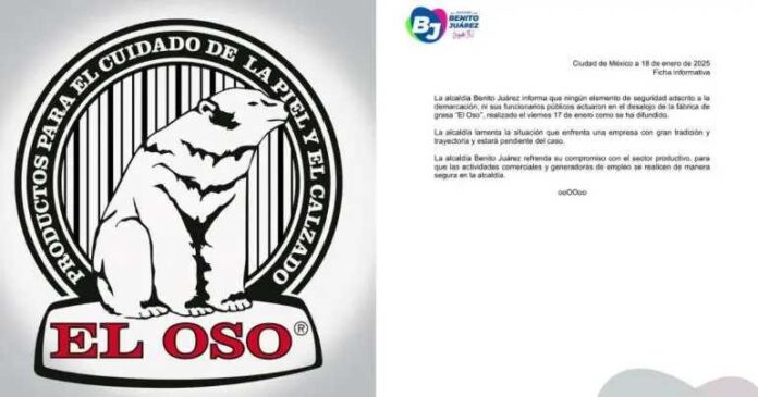 Tras darse a conocer el desalojo de la fábrica “El Oso”, la alcaldía Benito Juárez informó que ninguno de sus elementos de seguridad o funcionarios participaron en la operación, ocurrida la noche del viernes 17 de enero.