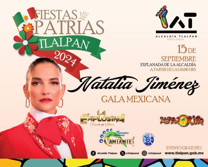 ALCALDÍA TLALPAN CELEBRARÁ FIESTAS PATRIAS CON ESPECTÁCULO DE NATALIA JIMÉNEZ