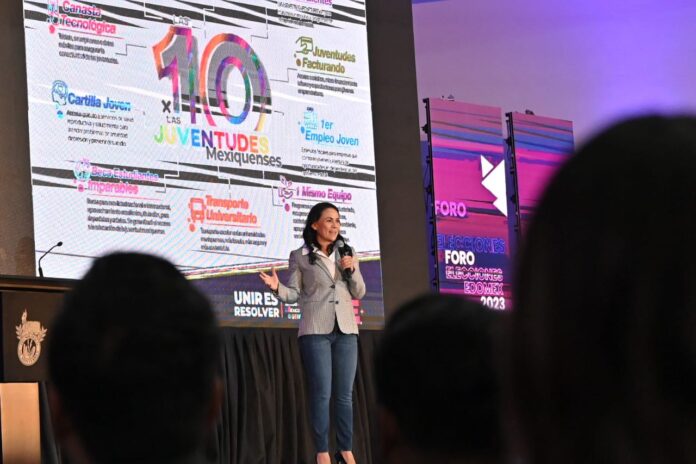 Durante su participación en el Foro Elecciones Edomex 2023 realizado por el Tec de Monterrey Campus Toluca, la abanderada aliancista sostuvo que los jóvenes no solo quieren becas, quieren ser productivos y quieren un chance porque son una nueva generación y un nuevo momento para el Estado de México.