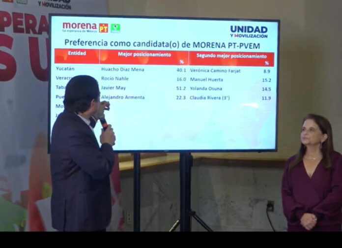 Alejandro Armenta es el mejor posicionado en la encuesta de Morena para ser el candidato a la gubernatura de Puebla con 22.3%.En tanto, Claudia Rivera, exalcaldesa de Puebla, es la mujer con mayor preferencias con 11.9%.Así lo dio a conocer el dirigente de Morena, Mario Delgado, quien indicó que el porcentaje de votación que marcan las tres encuestas para Puebla supera el 55%.“Lo cual indica que podemos ganar el estado y todos sus distritos federales, para contribuir al plan C: ganar la Presidencia de la República, el Congreso y los estados”.