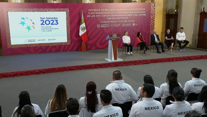 El presidente de México, Andrés Manuel López Obrador (AMLO), reunió en Palacio Nacional a los atletas mexicanos para reconocer su participación en los Juegos Centroamericanos y del Caribe 2023, razón por la cual, el Gobierno Federal les entregará más de 88 millones de pesos.