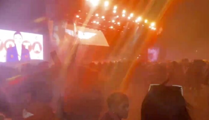 Según testimonios y videos en redes sociales, el incidente se produjo alrededor de las 18:00 horas del miércoles, cuando el viento hizo tambalearse dramáticamente la estructura del escenario.