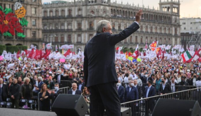 El presidente Andrés Manuel López Obrador hizo un llamado a los asistentes para conmemorar el próximo 1 de julio el triunfo de 2018 al pedir que no haya ninguna porra a favor de las “corcholatas” de Morena.