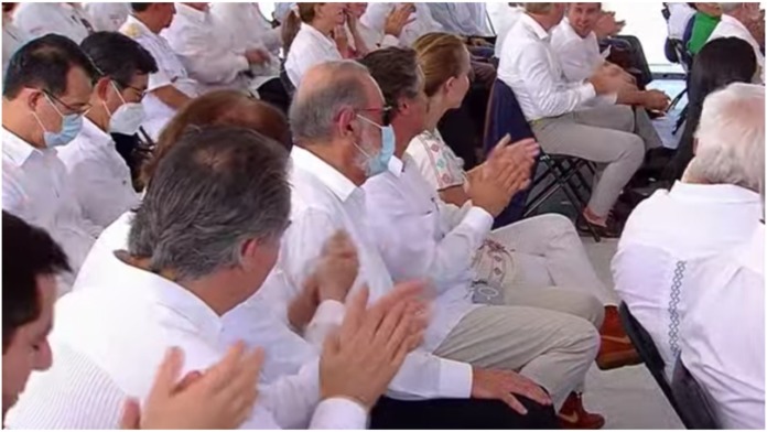 Además se encuentra Francisco Cervantes, presidente del Consejo Coordinador Empresarial (CCE); así como Daniel Chavez, del Grupo Vidanta y supervisor honorario de avance del Tren Maya.