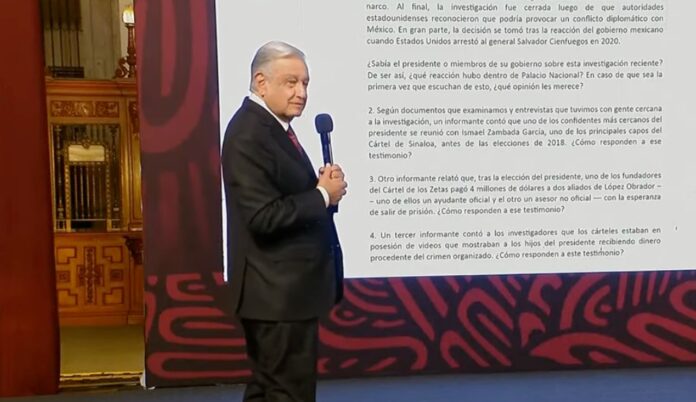 Según López Obrador, el reportaje detalla presuntos vínculos de sus hijos y otras personas cercanas al mandatario con el crimen organizado, específicamente relacionados con financiamiento durante la campaña presidencial de 2018 y su actual Gobierno.