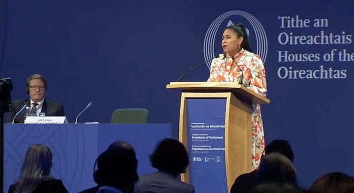 En su participación, en la Conferencia Europea de Presidentes de Parlamentos 2023, la senadora enfatizó que no puede haber democracia sin las minorías incluidas y no se puede debatir con la exclusión de quienes durante siglos han sido olvidados.