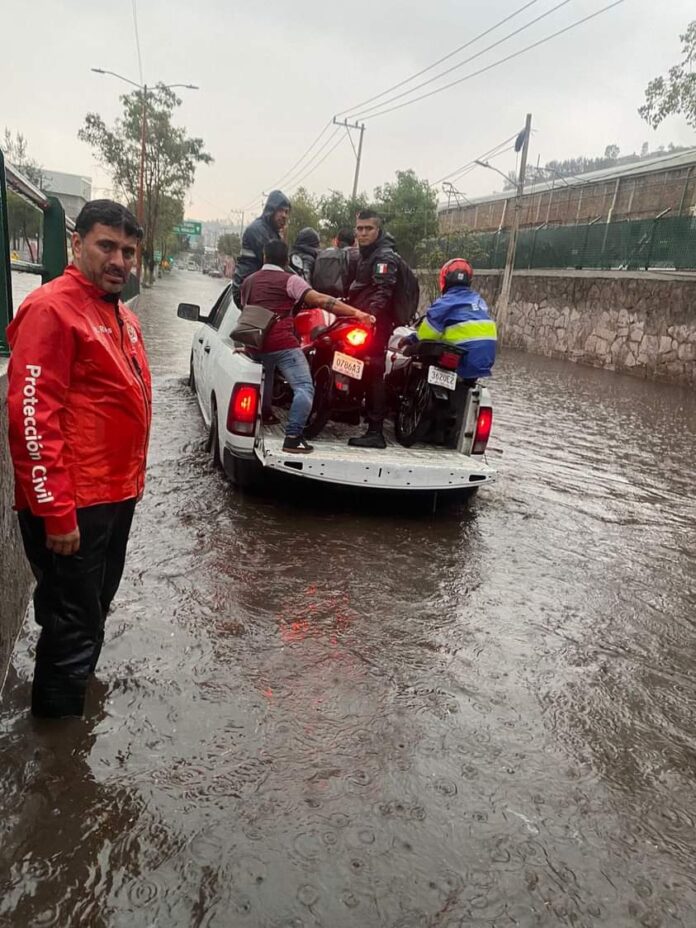 Ante la intensidad de la lluvia de 62 mm por centímetro cuadrado, se desplegaron 13 camiones Vactor a lo largo del territorio, 15 unidades de PC, así como elementos de Seguridad y Tránsito para liberar las diferentes vialidades.