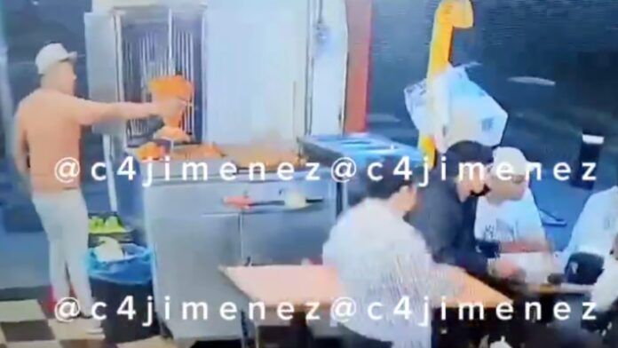 Los hechos se desarrollaron en la Tortería Ojo de Agua, y quedaron grabados en un video donde se puede ver a tres sujetos y una mujer en una mesa, aparentemente esperando su cambio después de que terminaron de comer.
