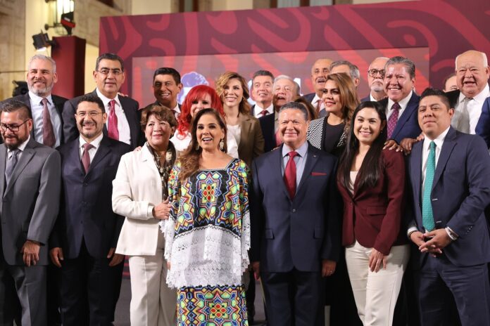 La Gobernadora del Estado de México, Delfina Gómez Álvarez asistió a la conferencia de prensa matutina del Presidente de México Andrés Manuel López Obrador, en la que estuvieron las y los gobernadores de 23 entidades adheridas al esquema de salud IMSS-Bienestar.