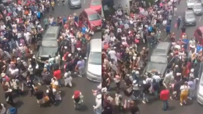 El incidente ocurrió alrededor de las 11:30 horas, cuando las personas impedían el paso vehicular en dirección al Centro Histórico como parte de una jornada de movilizaciones que se registran este día en distintos puntos de la capital.