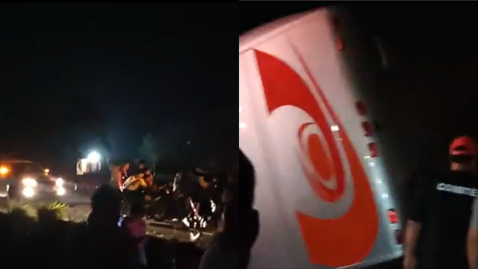 La noche del domingo un autobús volcó en la carretera federal 180 Matamoros-Puerto Juárez, tramo Paso del Toro-Alvarado, a pocos metros de la desviación hacia el municipio de Tlalixcoyan, Veracruz.