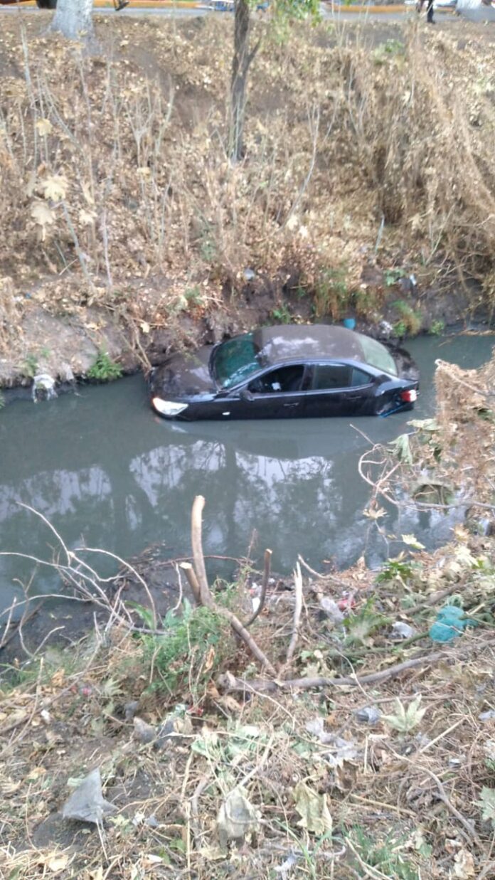Al lugar de los hechos acudieron los policías municipales de la unidad TPV-135, quienes recibieron vía radio frecuencia C4 la alerta de que un automóvil había caído al cauce de aguas negras.
