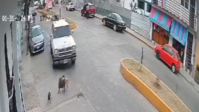 En la grabación se puede observar el momento exacto en el que el hombre conduce su camioneta con el presunto afán de herir a los animalitos, los cuales se encontraban jugando al costado de la avenida Constituyentes y avenida Reforma, del municipio de Jilotepec.
