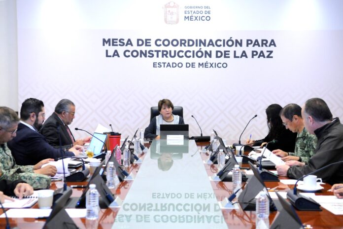 La Gobernadora del Estado de México, Delfina Gómez Álvarez encabezó la Mesa de Coordinación para la Construcción de la Paz, donde sus integrantes dieron seguimiento a la estrategia en materia de seguridad que se implementa en la entidad.