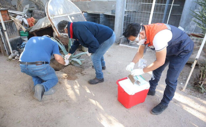 La Secretaría de Salud en Baja California Sur informó que con la asistencia técnica de especialistas  de la Escuela Nacional de Ciencias Biológicas del Instituto Politécnico Nacional realizó el fin de semana esta jornada en los domicilios de los cinco casos confirmados por este padecimiento y en otros sitios estratégicos.