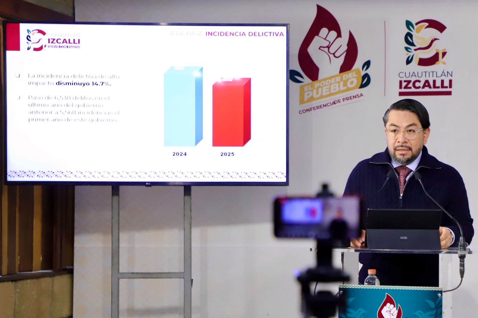 Durante su conferencia semanal “El Poder del Pueblo”, el alcalde dio a conocer que en 2024 se registraron 6 mil 530 delitos, mientras que en 2025 la cifra bajó a 5 mil 558, lo que representa una reducción significativa en el primer año de la actual administración municipal.