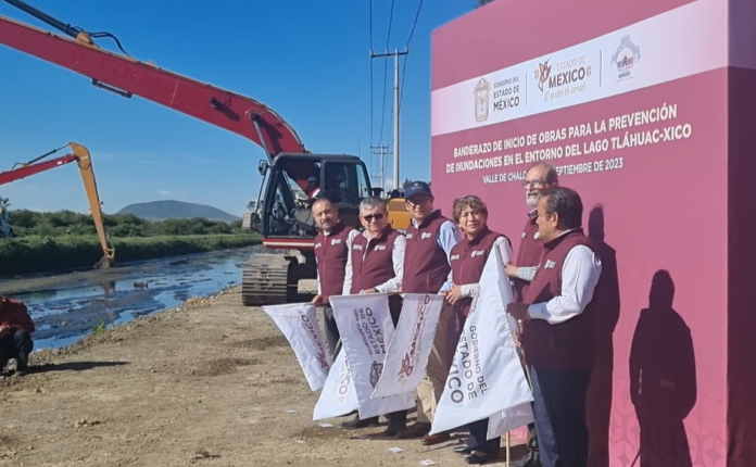 VALLE DE CHALCO, Estado de México.- La Gobernadora del Estado de México, Delfina Gómez Álvarez dio el banderazo de inicio de las obras para la prevención de inundaciones que se realizarán en el entorno del Lago Tláhuac-Xico, a fin de que las comunidades de Valle de Chalco y Tláhuac tengan menos riesgos de inundaciones y cuenten con un suministro seguro de agua de calidad.