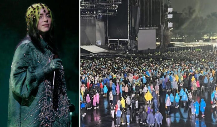 Fue a través de las redes sociales que usuarios y fans de Billie Eilish compartieron imágenes y fotografías en donde se puede observar a cientos de fanáticos con impermeables y bajo la intensa lluvia en espera de que arranque el show, pese a esperar por varios minutos con la esperanza de que las precipitaciones disminuyeran y permitieran al equipo de la cantante seguir la programación, las tormentas se complicaron y fue cancelado el show.“Lamentablemente, el programa de esta noche ha sido cancelado debido a las inclemencias del tiempo. ¡Todos por favor regresen a casa sanos y salvos!”, escribió a través de su cuenta oficial de Twitter.