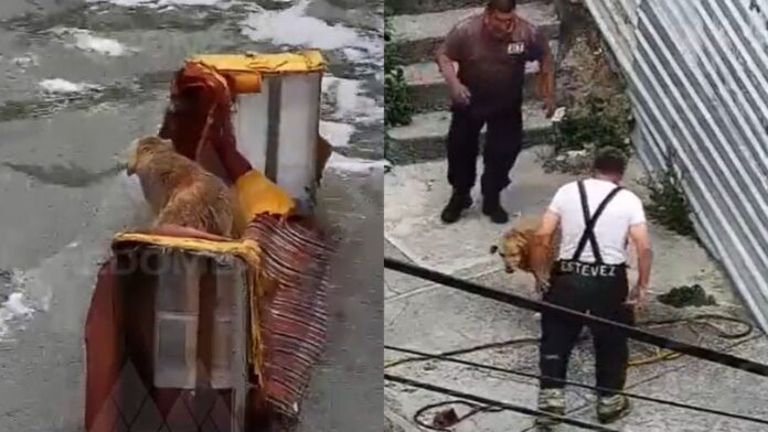 A través de las cámaras del Centro de Control, Comando, Comunicación, Computo y Calidad del Edomex, elementos de seguridad se percataron de como un perrito, arriba de un sillón, era arrastrado por una corriente de agua, en la colonia Mártires de Río Blanco, por lo que enviaron a elementos de rescate a la zona.