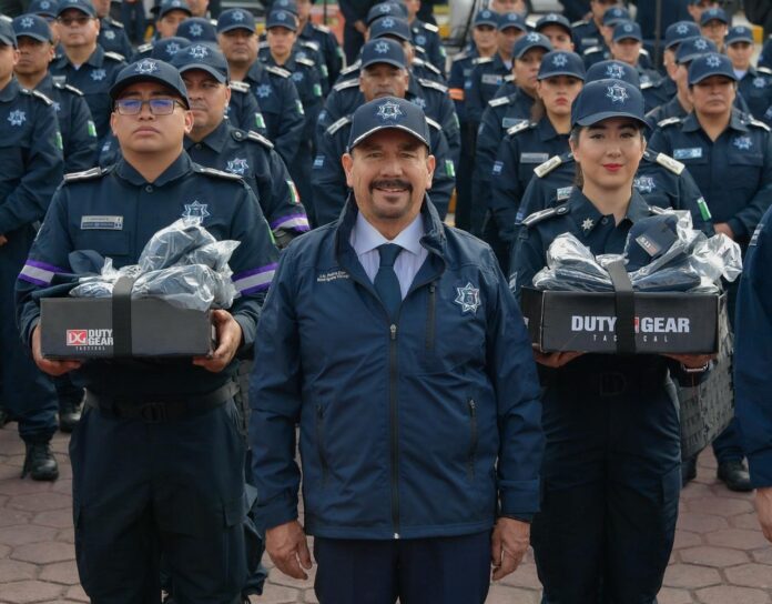 Rodríguez Villegas aseguró que los logros en seguridad se deben a que durante su gestión se han mejorado las condiciones de vida de la Policía Municipal, recientemente, entregaron 250 chalecos balísticos y nuevos uniformes de la marca 5.11, que incluyen camisolas, pantalones, botas, cinturones, gorras y chamarras, en una dotación equivalente a 2,616 unidades (dos por cada elemento).
