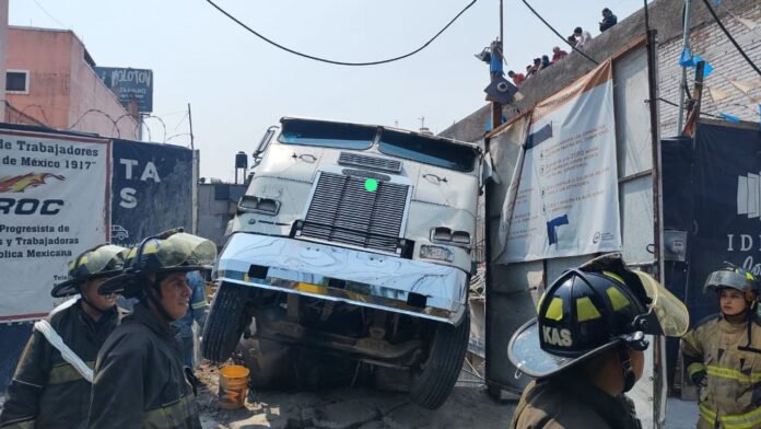 De acuerdo con los reportes, la unidad pesada cayó por su parte trasera cuando ingresaba a la construcción, por lo que empleados quedaron atrapados.