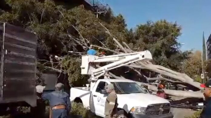 Los hechos ocurrieron en la calle Luz Saviñón, a la altura de Xochicalco, donde el árbol también tiró varios cables de energía eléctrica, lo que provocó que al menos dos cuadras a la redonda se quedaran sin luz.