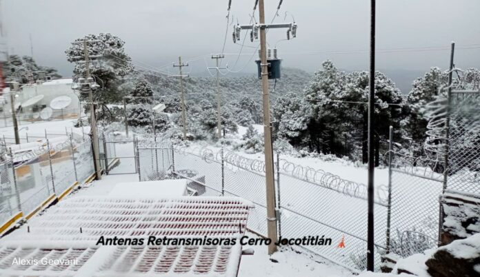 A través de redes sociales, se compartieron videos y fotografías que capturaron el sorprendente fenómeno de la nevada en la zona elevada en el Cerro de Jocotitlán, ubicado en el Estado de México.