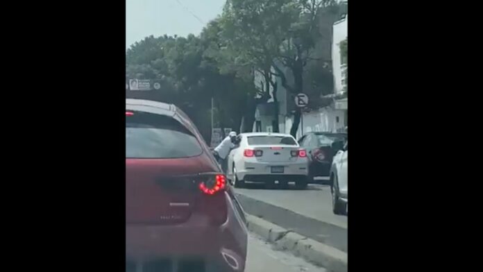 Un violento asalto contra un automovilista fue captado en carriles laterales del Circuito Interior, en la colonia Cerro Prieto, cerca del Metro Aragón.