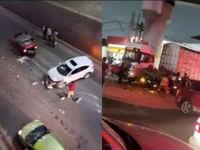 El primero tuvo lugar en la carretera Tlalnepantla – Cuautitlán, en el Edomex, donde se reportaron tres personas lesionadas.En un video que se ha difundido en redes sociales, se puede ver un vehículo negro volcado, con las llantas hacia arriba.