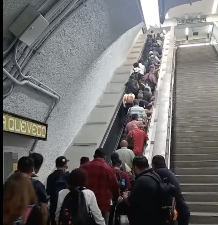CIUDAD DE MÉXICO.— Desata un paro de emergencia en una escalera eléctrica una caída en cadena que deja al menos 11 personas lesionadas la mañana de este viernes, en plena hora pico, en la estación Miguel Ángel de Quevedo de la Línea 3 del Sistema de Transporte Colectivo Metro.