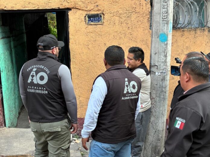 La alcaldía Álvaro Obregón realiza labores de mitigación y aseguramiento en la calle Paso Florentino, colonia La Mexicana, luego de que la tarde del miércoles un camión de reparto de refrescos perdiera el control e impactara directamente contra una vivienda, provocando daños severos en la estructura y bloqueando la vialidad.
