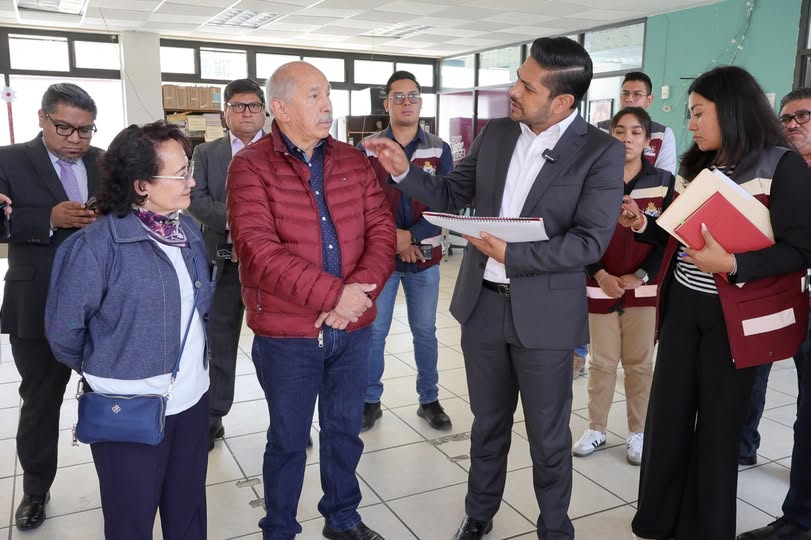 El alcalde encabezó la visita en un terreno ubicado en la colonia La Perla, acompañado por la rectora de la Universidad Nacional Rosario Castellanos, Alma Xóchitl Herrera Márquez, y por el titular del Instituto Nacional para el Federalismo y el Desarrollo Municipal (INAFED), Armando Quintero Martínez, quienes revisaron las condiciones del espacio propuesto para la instalación del plantel.