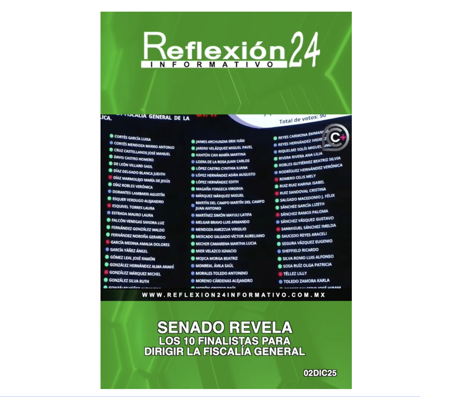 La Junta de Coordinación Política, que preside Adán Augusto López, presentó el listado paritario (5 mujeres y 5 hombres) que se someterá a votación este mismo día en el pleno. Los nombres finalistas serán enviados a la Presidencia para integrar la terna definitiva.