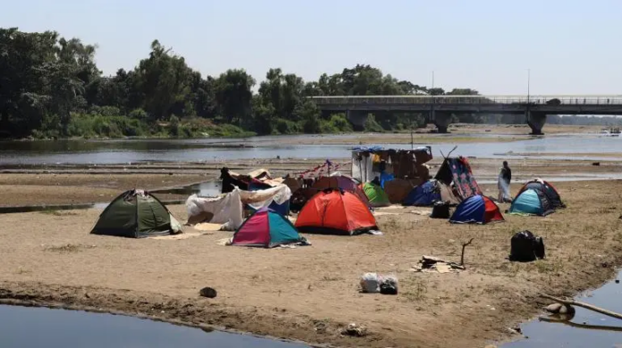 En la frontera sur, en Ciudad Hidalgo, se mantiene un campamento de entre 500 y 1.000 venezolanos con casas de campaña en espera de recibir atención de las autoridades mexicanas.