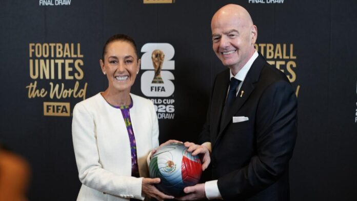 Claudia Sheinbaum, presidenta de México, acudió este viernes 5 de diciembre al centro John F. Kennedy Center, Washington D. C., Estados Unidos, para formar parte del sorteo de la Copa Mundial de la FIFA 2026, evento donde México, Estados Unidos y Canadá compartirán el papel de anfitriones.