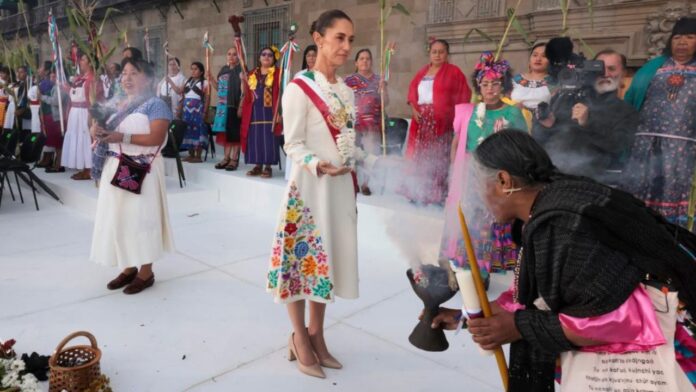 En una ceremonia con mujeres de 70 pueblos indígenas y afromexicanos, la presidenta de México, Claudia Sheinbaum, recibió el bastón de mando durante una ceremonia espiritual en el Zócalo y asumió 100 compromisos para su administración.