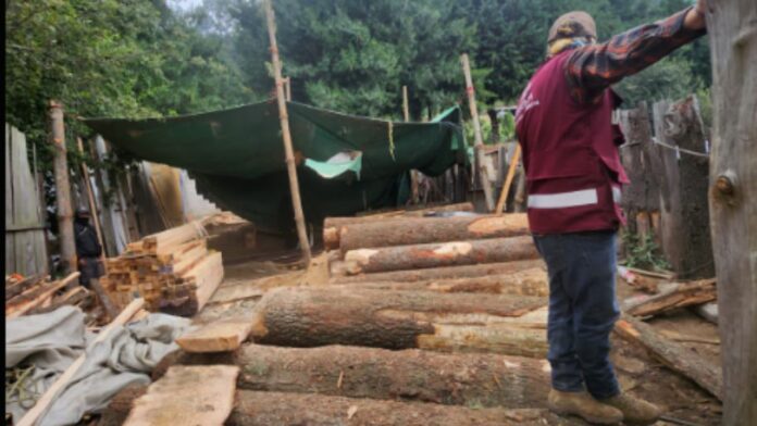 En el segundo inmueble, ubicado en la calle 21 de Diciembre de la misma colonia, se resguardaron 13 troncos de madera, además se detuvieron a un hombre de 32 años de edad, así como a dos mujeres de 56 y 36 años, respectivamente.