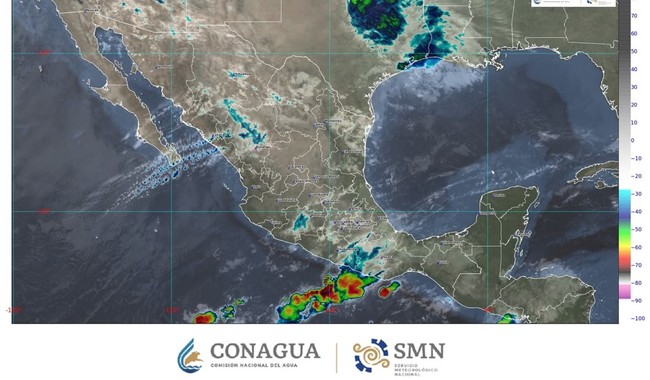 Además, se pronostican fuertes rachas de viento, especialmente en el Istmo y Golfo de Tehuantepec, donde podrían alcanzar hasta 70 kilómetros por hora, así como oleaje elevado de hasta 2.5 metros en costas del Pacífico.