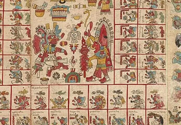 El “Códice Borbónico”, llamado así porque está conservado en el Palacio Borbón –sede de la Asamblea Nacional–, representa los “calendarios adivinatorios y solares” de la civilización mexica, señala la web del Ministerio de Cultura francés.