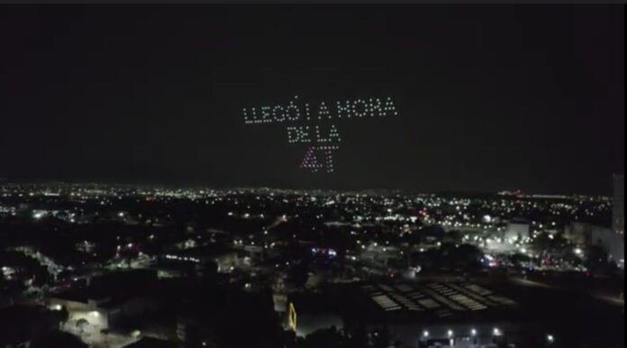 En tanto, en el cielo, los drones señalaban en el cielo las carencias en el municipio, formando frases como “No más insguridad”, “No más baches en Izcalli”, “Izcalli merece agua” y “Llegó la hora de la 4T”.