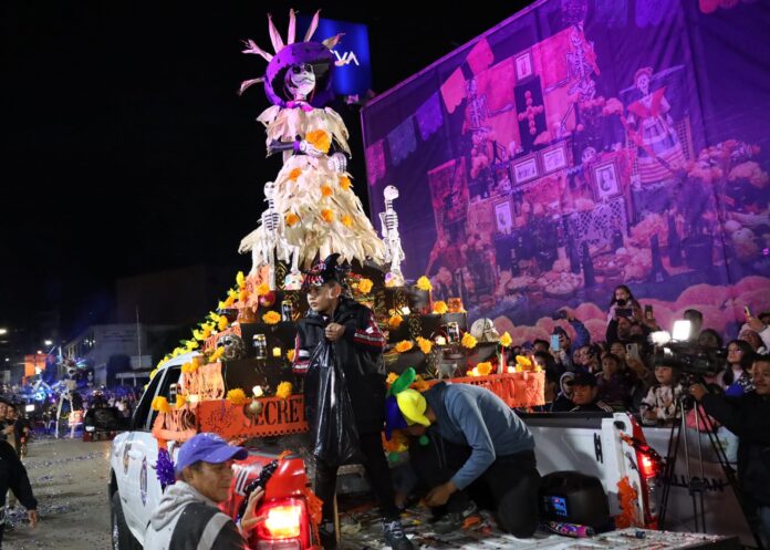 Asimismo, durante la noche, se llevó a cabo el desfile y concurso de carros y motos alegóricos, en donde los participantes plasmaron su creatividad, pasión y habilidad para darle vida a catrinas, calaveras, así como deidades y criaturas mitológicas. La premiación estuvo dividida en distintas categorías, entre ellas la de vehículos institucionales y de ciudadanos, así como de motocicletas. Los primeros lugares recibieron un premio de 10 mil pesos, los segundos de siete mil pesos, mientras que las terceras posiciones ganaron cinco mil pesos.