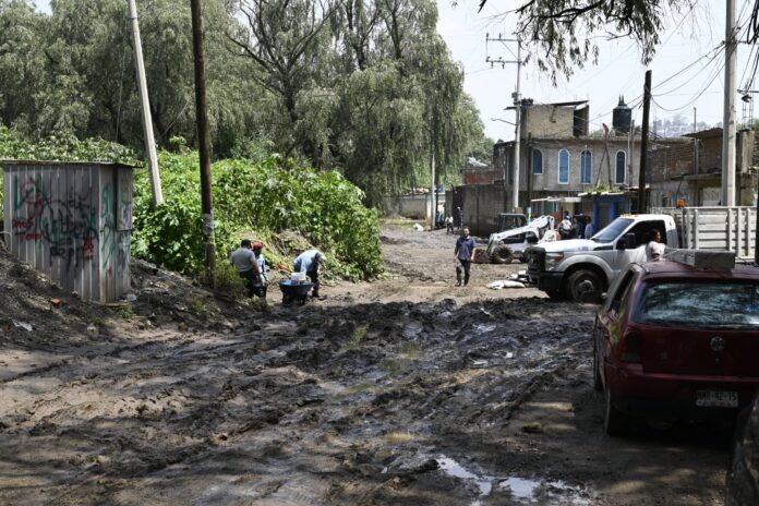 Continúan labores de emergencia en Naucalpan tras intensas lluvias