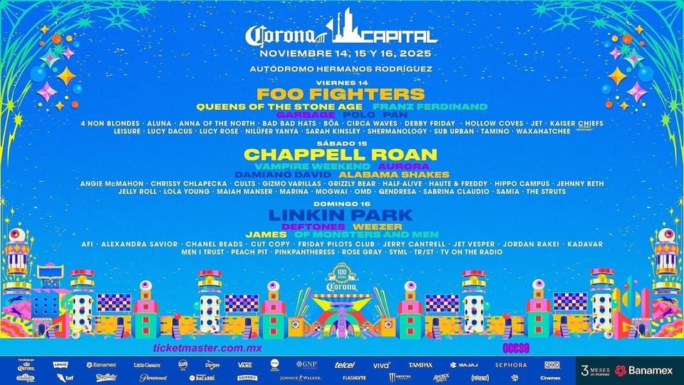 Corona Capital es el festival anual de música internacional más importante de México organizado por OCESA en la Curva 4 del Autódromo Hermanos Rodríguez de la CDMX desde 2010. Además de la música, el festival destaca por su enfoque en la sostenibilidad, contando con la certificación internacional ISO 20121, además, año con año promueve la inclusión y accesibilidad, ofreciendo servicios para personas con discapacidad auditiva o movilidad reducida. Billie Eilish, The Strokes, Arctic Monkeys, My Chemical Romance y Paul McCartney son algunos de los artistas que han encabezado sus ediciones anteriores y este 2025 promete entregar una edición inolvidable de la mano de headliners como Foo Fighters, Chappell Roan y Linkin Park.