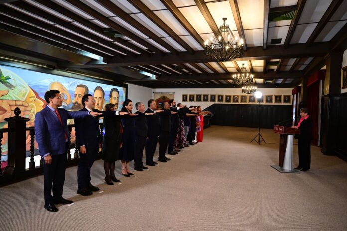Su primer acto tomó protesta a 14 de 18 integrantes de su Gabinete Legal, quienes la acompañarán en su periodo de Gobierno 2023-2029.