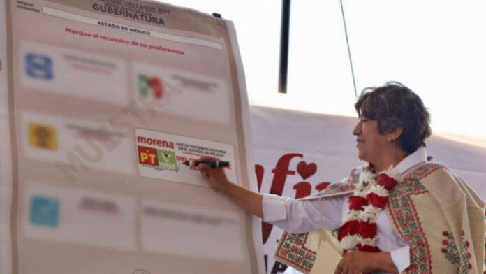 La candidata de Morena, Delfina Gómez, hizo acto de presencia en Texcoco a primeras horas de la jornada electoral, para ejercer su derecho al voto.