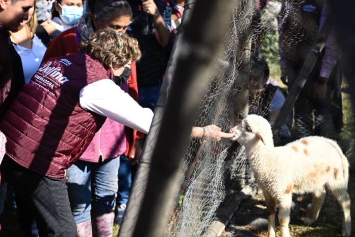 Delfina Gómez recorre granja de animales rescatados en Ixtapaluca