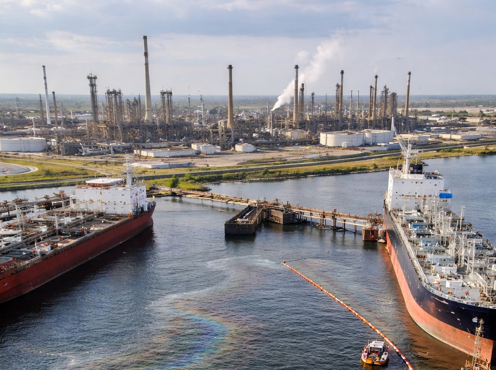 Un derrame de diésel en el muelle de la refinería Deer Park, en Texas, activó protocolos de emergencia luego de que dos embarcaciones privadas colisionaran durante maniobras de carga y salida del canal.