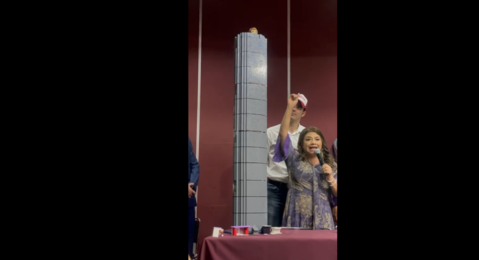 Está es una torre emblemática como representación visual de los 264 pisos ilegales erigidos por el cártel inmobiliario, una estructura que simboliza a seis Mítikahs juntas, ilustra la magnitud del cártel, así lo manifestó Clara Brugada, candidata de Mprena-PVEM-PT a la jefatura de gobierno de la Ciudad de México, al presentar y derribarla, con el fin de evidenciar la persistente corrupción que ha permitido la proliferación de edificaciones irregulares en la Ciudad de México.