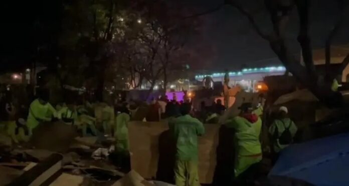 Alrededor de las 22:30 horas, mientras las autoridades se retiraban, personal de obras comenzó a desmantelar el campamento, destruyendo casas y confiscando pertenencias como si fueran desechos. Se reportaron actos de violencia y discriminación, con comentarios xenófobos por parte del personal involucrado.
